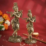 These elegant Kashmiri-style handmade earrings reflect the rich heritage and artistic beauty of Kashmir’s traditional craftsmanship. Crafted with an antique gold finish, the earrings showcase intricate detailing and long cascading chains adorned with ghungroo-style elements. Their graceful movement and refined design create a regal yet soulful appeal.